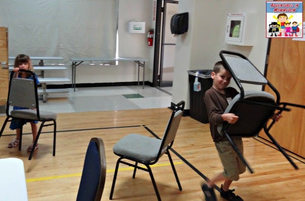Ok so clarification sought we had to stack all the chairs in piles of 6 at the front of the class.....we needed to be organised. Just think of it - 32 children all "armed" with chairs...chairs legs protruding forward like knights jousting and rushing towards the front. It had the possibility of complete carnage!!